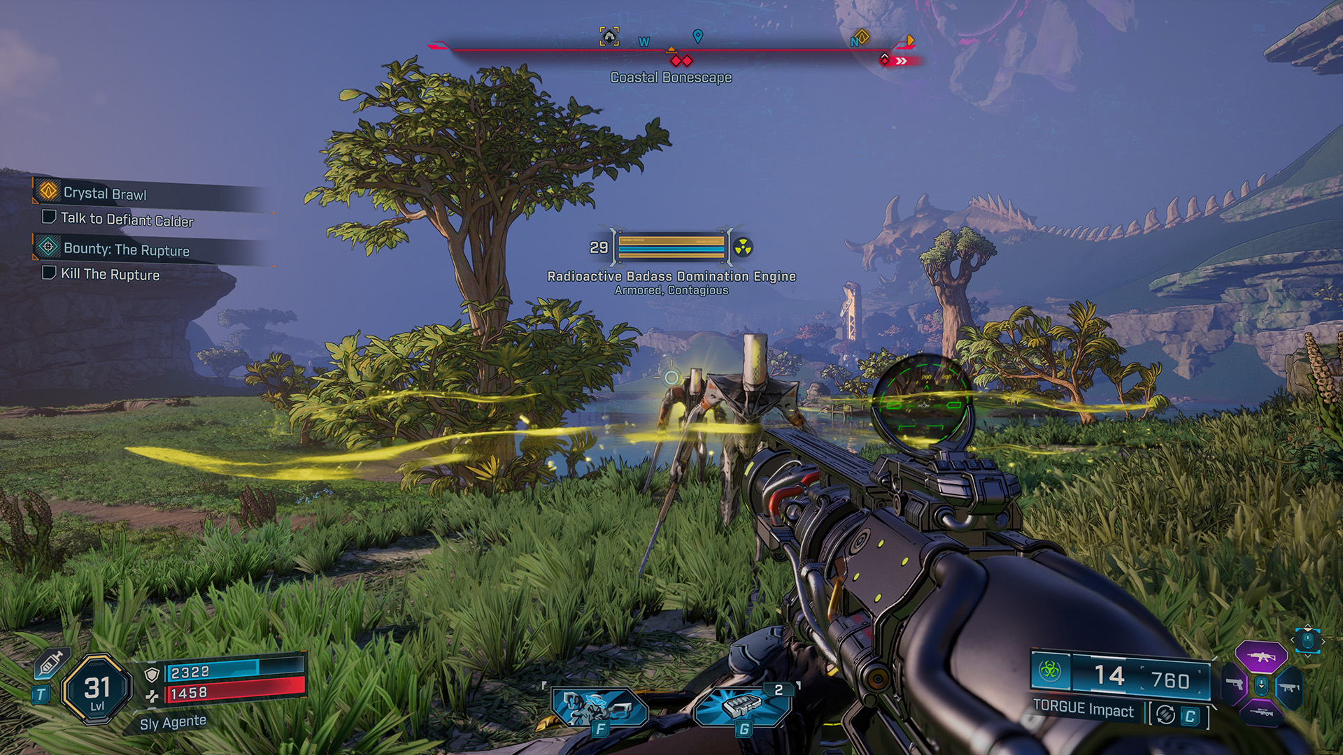 המעבר לשיטת החקר הזו הופכת את Borderlands 4 להרבה יותר זורם וכיפי בהשוואה לאזורים הסגורים והלינאריים של המשחקים הקודמים בסדרה, אולם היו לא מעט פעמים שבהן הרגשתי די אבוד בעולם המשחק עקב תחושת ה-FOMO הענקית שהמשחק הזה מעביר בזמנים שבהם אתם מנסים לחקור את העולם ולא לרוץ ישירות על קו העלילה הראשי, משהו שאני אישית פחות מעריך במשחקים בסגנון. אציין בנוסף שכמות תוכן הצד שהמשחק הזה כולל בהחלט מרשימה, אבל גם כאן חשתי לעיתים תחושת בלאגן מובהקת מכמות התוכן שהמשחק הזה זרק עליי, זאת לצד העובדה שיש לא מעט משימות צד שמרגישות די פשוטות ולא מרגשות (לרמה שבכנות הייתי מעדיף לדלג עליהן כדי להתקדם בסיפור המרכזי), שלא הביאו לי תמורה מהותית מספיק כדי שאגדיר אותן כניצול טוב של הזמן שלי במהלך המשחק. כמו כן היות ומדובר בעולם פתוח שאינו באמת פתוח, כמות הקירות הבלתי נראים שהמשחק הזה כולל באזורים מסוימים יכולה מאוד להעיק, אבל לשמחתי לא מדובר בעניין שכיח מידי לאורך המשחק, ובכנות זה משהו שאני רגיל אליו מכל המשחקים הקודמים בסדרה ככה שזה לגמרי לא סוף העולם (הפתוח, #סליחה).