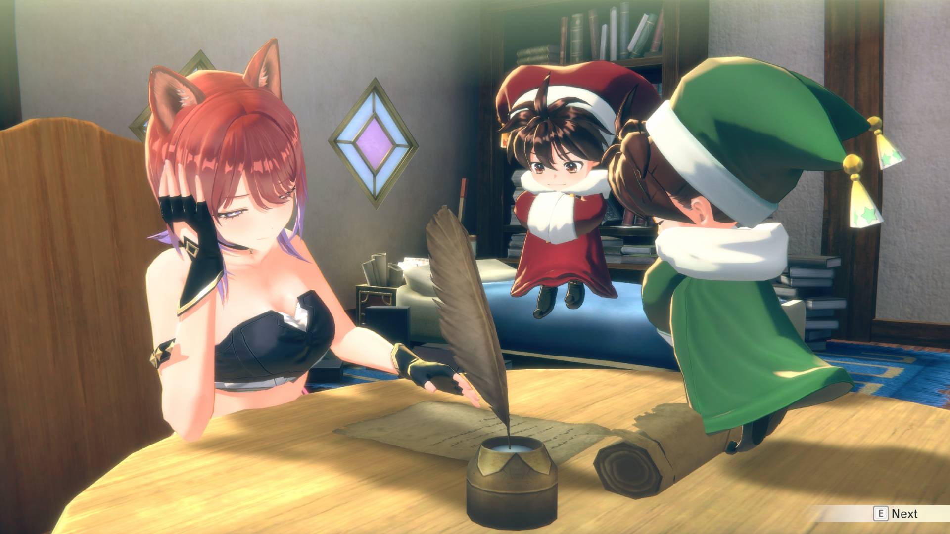 הסיפור עצמו חמוד, לא הייתי אומר שהוא סופר מעניין, הרבה ממנו לצערי כן מרגיש מעט מטופש לעיתים ולא בגלל העובדה שהמשחק טורח להציג לנו פרומפטים שונים בנוגע לדברים שהשחקן פותח במהלך המשחק, זה מתחיל מפתיחת פורטל לאזור מיוער באטלייה שעליו אנחנו מקבלים הודעה שפתחנו, ולפתע אנחנו מקבלים סצינה של הדמויות על כך שהן לא יודעות לאן הפורטל שהם פתחו מוביל וזה סיכון לבדוק. אותו דבר קורה כמה דקות אחר כך כאשר המשחק מסביר לנו מכניקה מסויימת של האזור אבל הדמויות שלנו בסצינה שמגיעה לאחר מכן לא מתקשרות עם המכניקה שכביכול פתחנו לפני דקה על מנת לשמור אותה לשלב מעט מאוחר יותר? צורה קצת מוזרה להציג את המשחק בעיניי והלוואי והיו דברים שהם היו שומרים קצת קרוב יותר לחזה בשלב הזה במהלך המשחק כשאנחנו פותחים אזורים ומכניקות שונות.
