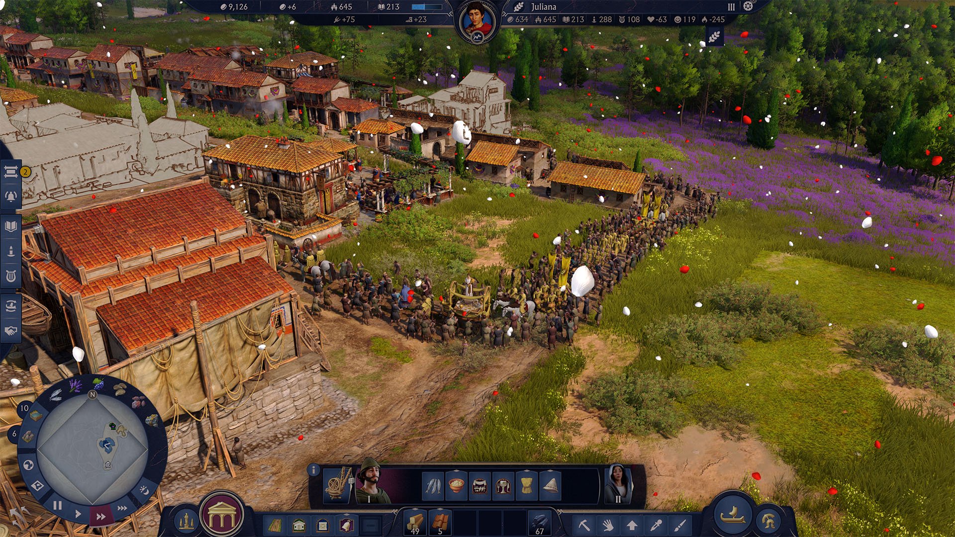 הבעיה שלי עם Anno 117 מתחילה במקום שבו משחקיות ה-Grand Strategy נכנסת לפעולה והמערכות השונות מנסות להשתלב אחת בשניה. אני אתחיל ואגיד שמערכת הדתות שבאופן מסורתי עם משחקי Grand Strategy לא משחקת תפקיד מרכזי, כאן היא שולית עוד יותר מבדרך כלל. ברגע שתבנו מקדש בעיר שלכם תוכלו לבחור אל שאותו תעבדו מתוך רשימה של אלים, לכל אל יש את השיפורים השונים שהוא מביא לעיר וזהו פחות או יותר, מדובר על מערכת פאסיבית למידיי שמעבר לבחירה אחת היא לא מאתגרת את השחקן יותר מידי או נותנת לו ערך מוסף. כך גם מערכת הדיפלומטיה שעושה כמה דברים קטנים בצורה וטובה יותר מ-Civilization למשל (בעיקר באשר ל-UI) אבל גם היא יחסית פשטנית ולוקה בחסר אם מסתכלים על המשחק בפרספקטיבה רחבה יותר. אם כך, לא יפתיע אתכם לשמוע שגם מערכת הקרבות אפויה למחצה, מצד אחד יש מגוון יחידות מכובד (אם כי לא ענק) אבל מן הצד השני המערכת עצמה די פשוטה ומזכירה משחקי RTS של תחילת שנות ה-2000 וזה לאו דווקא היה משהו רע אם ה-AI שנלחם נגדנו היה מאתגר באיזשהי מידה או פשוט רוצה להילחם ולא נתקע במקום או בורח למראה מאות הלוחמים שלי שפשטו כרגע על החוף שלו בניסיון להשתלט על העיר.