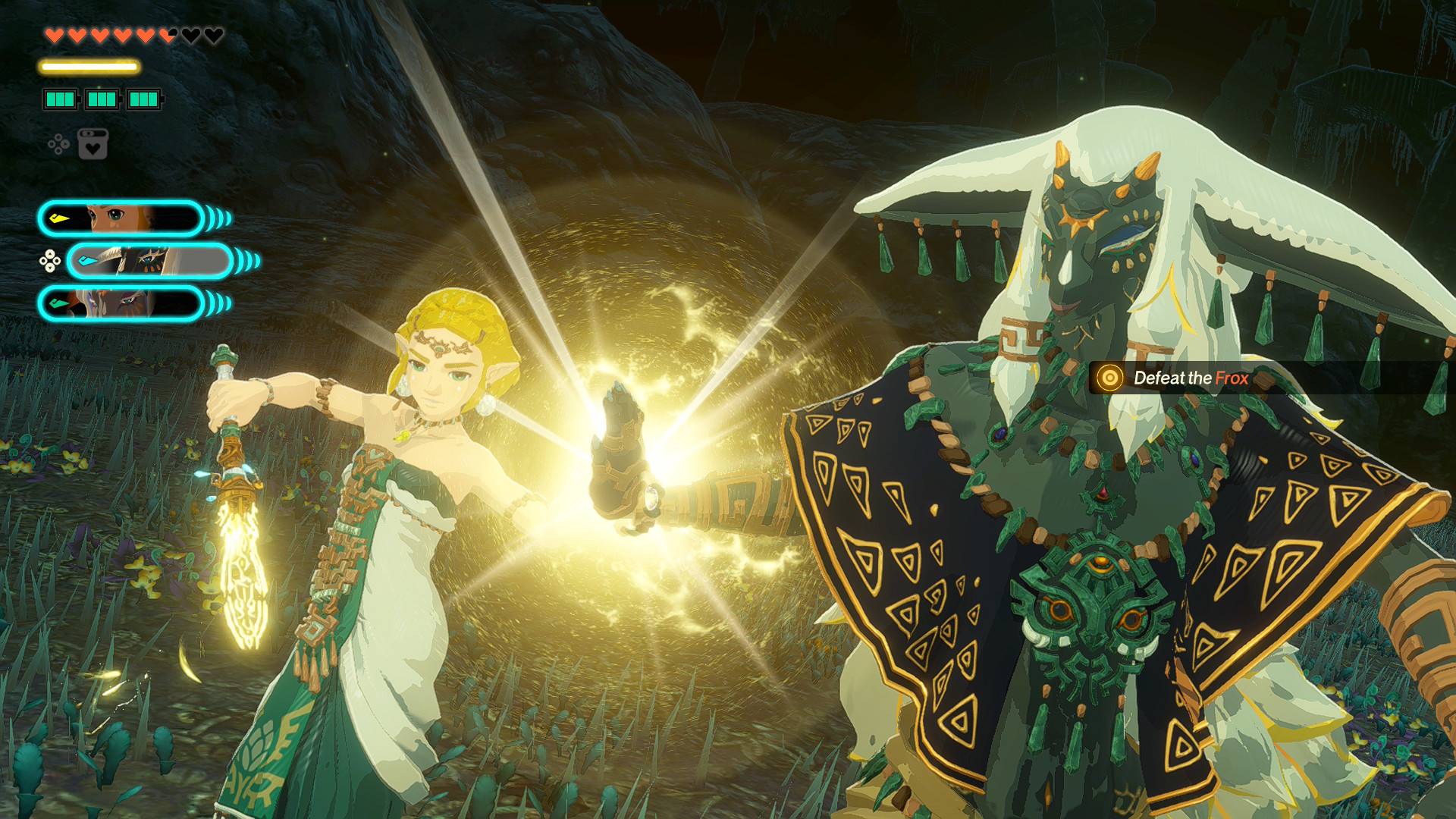 אצלול קצת יותר לעומקה של המשחקיות: AoI מאפשר לנו לקחת פיקוד על שורת דמויות (לא פחות מ-19 דמויות שחיקות שונות) איתן נצא לאותם קרבות ענק מרשימים, כשלכל דמות יש את ארסנל היכולות והקומבואים המיוחד שלה איתה היא יוצאת להילחם באויבים השונים בהם ניתקל לאורך המשחק. AoI מגדיל בנוסף את ארסנל היכולות על-ידי הוספה של היכולת לעשות שימוש ב-״Zonai Devices״ - אותם מכשירים מיוחדים שהכרנו ב-TOTK, שמאפשרים לנו לבצע מהלכים מבוססי אלמנטים (אש, מים וכו׳) שישפיעו בצורות שונות על האויבים שנתקוף. כמו כן המשחק כולל מערכת חדשה של ״שיתופי פעולה״ בין דמויות שונות, בה נוכל להשתמש על-מנת לבצע מהלכים חזקים במיוחד המשלבים את היכולות של שתי דמויות שונות.