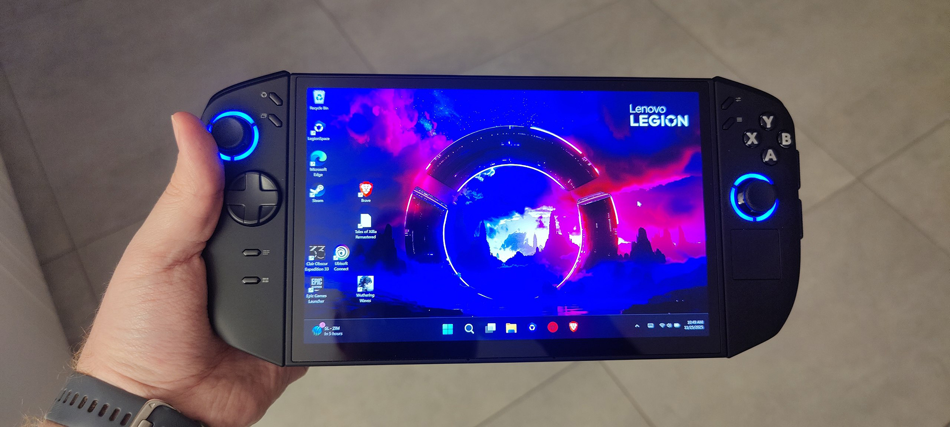 לפני שאני ממשיך ישר לדבר על ווינדוס, כדאי שאציין כמה דברים שקשורים לשלטים עצמם מאחר והם מכילים הרבה מאוד כפתורים. בשני הצדדים ניתן לשים לב שמעבר לכפתורי ה-Start וה-Select, ישנם שני כפתורים נוספים מעליהם, אחד שמתפקד ככפתור להגדרות המהירות של המכשיר והשני פותח וסוגר את התוכנה של Lenovo שאמורה לתפקד כמו Big Picture עבור המכשיר. בצד ימין יש פד עכבר מתחת לג'ויסטיק ובצד שמאל מתחת ל-D-Pad יש שני כפתורים, האחד שולח אותנו לשולחן העבודה והשני פותח את כלל החלונות כמו WinKey + Tab שמאפשר לעבור בין חלונות במהירות. לשני הקונטרולרים יש כפתורים אחוריים שניתנים לתכנות ובקונטרולר הימני יש גם שני כפתורים צדדים שניתנים לשימוש במצב FPS של הקונסולה שהופך את הקונטרולר הימני לסוג של עכבר, שזה מצב נחמד ודורש מעט התרגלות לצד התעסקות על מנת להתאים את השליטה למשחקים שונים מאחר ואין פריסטים אוטומטיים עבור משחקים שונים.