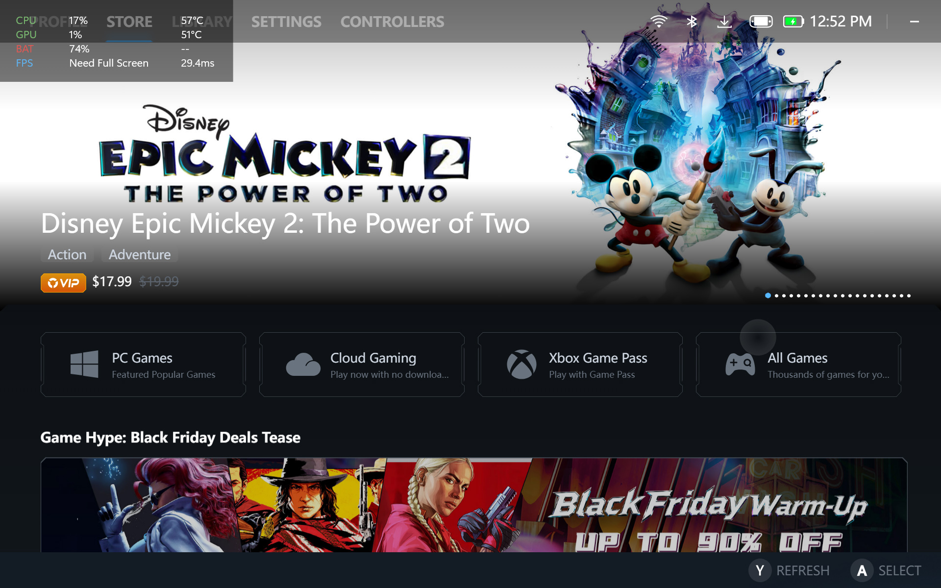 הרושם הראשוני שלי מווינדוס על הקונסולות הניידות האלה הוא עדיין רע מאוד, אבל כניראה שהוא ניתן לשיפור, בהפעלה ראשונה המערכת הפעלה עולה לשולחן העבודה בלי בעיה, אבל בלי מקלדת ועכבר שאפשר לחבר למכשיר, ככל הנראה שביצוע של כל ההתקנות על המכשיר יהיו כאב ראש לא קטן עבור אנשים. על מנת באמת להתחיל להשתמש במכשיר צריך להוריד פלטפורמות כמו Steam ו-Epic Games, לעדכן דרייברים ומסיבה לא ברורה, בהתחלה אי אפשר אפילו להשתמש בפלטפורמה של Xbox כמו שצריך כשחסר קובץ או התקנה כלשהו על מנת באמת להתחבר למשתמש Xbox על המכשיר הזה. אני לא באמת בטוח איך הצלחתי לפתור את הבעיה הזאת בסופו של דבר אבל אני מקווה שהכניסה של Xbox Fullscreen ליותר מכשירים בימים האחרונים תפתור את כל בעיות התוכנה האלה כפי שראינו עם ה-ROG Xbox Ally X.