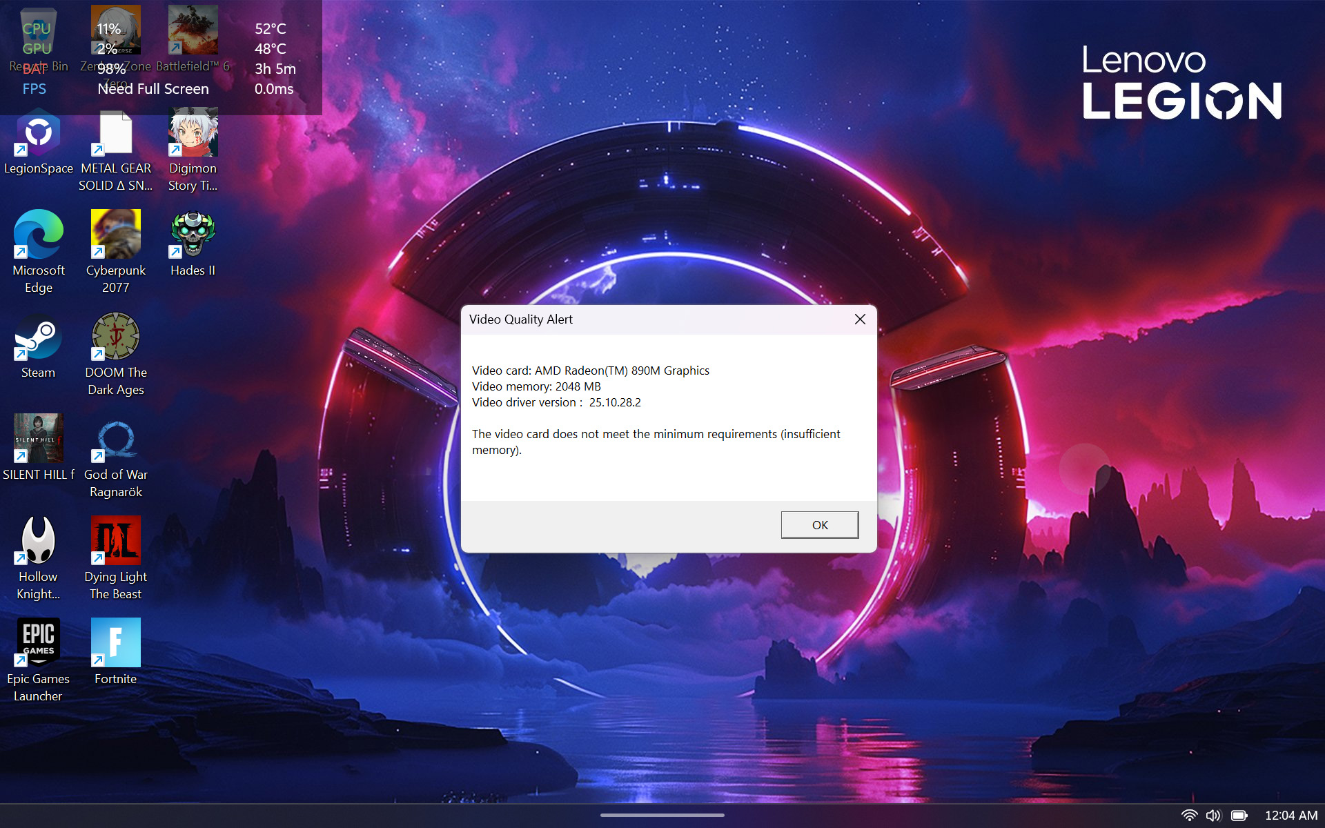 בואו נדבר עכשיו על מה המכשיר באמת מסוגל לעשות, היות והתוכנה היא בגדר העדפה אישית, אני בטוח שיש אנשים שיעדיפו גם לעבוד בלעדיה או בלי חלקים ממה שהיא יכולה להציע. ה-Lenovo Legion Go 2 הוא בין המכשירים הראשונים שזוכים לעשות שימוש במעבדים החדשים של AMD עבור המכשירים האלה, ה-Ryzen Z2 Extreme שכרגע קיים ב-MSI Claw A8 שיצאו מוקדם יותר השנה ופחות או יותר חזרו בהם מהשימוש בחומרה של Intel כמו המכשיר הקודם שלהם בסדרה. מעבר לכך יש לנו גם את ה-ROG Xbox Ally X שיצא ממש לא מזמן וכעת אנחנו במכשיר השלישי כאשר הזרוע עוד נטויה. ה-Legion Go 2 מבצע שימוש בליבות גרפיות מובנות שעושות עבודה טובה אבל הבעיה כמו שהזכרתי קודם, התחילה כאשר המכשיר הגדיר את הזכרון הזמין ל-VRAM של המכשיר ל-2GB בלבד, מה שגרם לי לחשוב שהיכולות של המכשיר נמוכות בהרבה ממה שהוא מסוגל לו, בפועל? הוא מסוגל באמת ללא מעט ואני בטוח שיש לו עוד הרבה פוטנציאל לא ממומש.